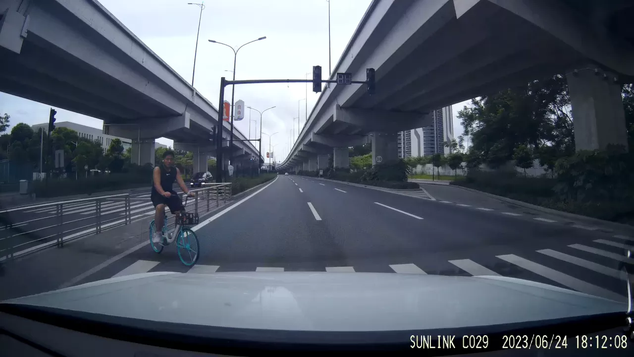 我错在超速、未注意观察路况、斑马线前未减速,若发生事故我必然是全责或主责,骑行者只是没有下车推行而已。人行道前有个限速30的标志,虽多次在此处通行但我从未注意到过。因为前几年这段路因为修高架一直施工,不知道是不是是最近加上的,导航也没有提示这个限速。由于行人较少,红绿灯虽然安装了,但也没有开启,所有灯都是熄灭的。当然,再多借口都没用,就是你的责任。